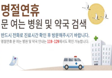추석연휴가 되면 항상 필수로 추석응급실 문여는 병원, 약국 확인이 필요할텐데요.