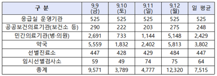 정부는 9월 11일 ~25일 2주간 추석비상응급 대응주간으로 지정