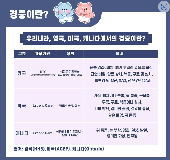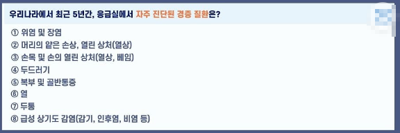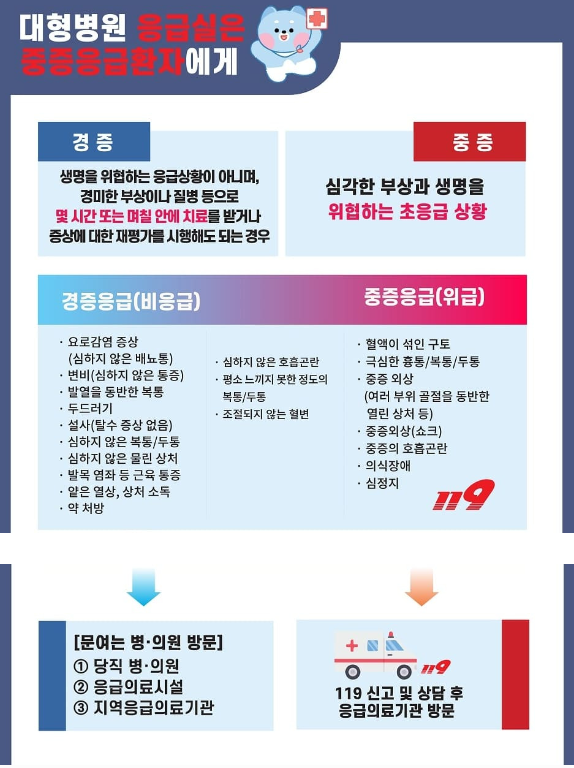 생명을 위협하는 응급 상황이 아니며 경미한 부상이나 가벼운 질병 증상인 경우 응급실 대신 가까운 병·의원을 이용하시기 바랍니다.